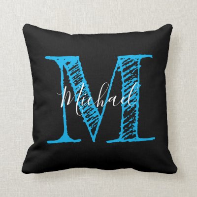 Ad: Monogram Turquoise Chalk Hand Lettered On Black Throw Pillow
