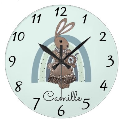 Ad: Personalized Bunny Rainbow Blue Nursery Large Cloc Large Clock