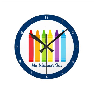 Ad: Cute Kindergarten Teacher Custom Crayon Classroom Round Clock