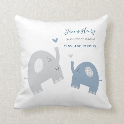 Ad: Elephant Birth Stats Nursery Throw Pillow
