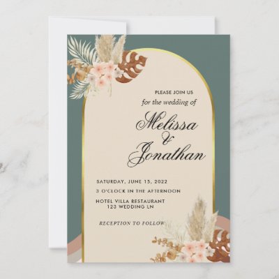 Boho Eucalyptus Green Wedding Invitation Pampas