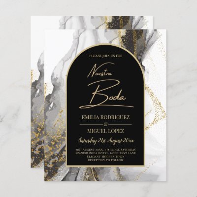 Modern wedding item featuring black and gold marble agate abstract effect with black arch frame and gold colored text. This wedding item is part of a larger collection which includes wedding invitations (budget and traditional) RSVP cards Save the Dates Wedding Welcome Sign and more. View the attached collection to see them all. This elegant and modern design is perfect for your classy wedding whether it be spring summer fall or winter. 🎨 Design by LeahG® weddingdesignchic.com and 100xgifts.com. 📌 PIN this to your Pinterest wedding moodboard. ⬇️ VIEW ALL THE PRODUCTS FEATURING THIS DESIGN VIA THE TAB BELOW ⬇️ myArchWedding
